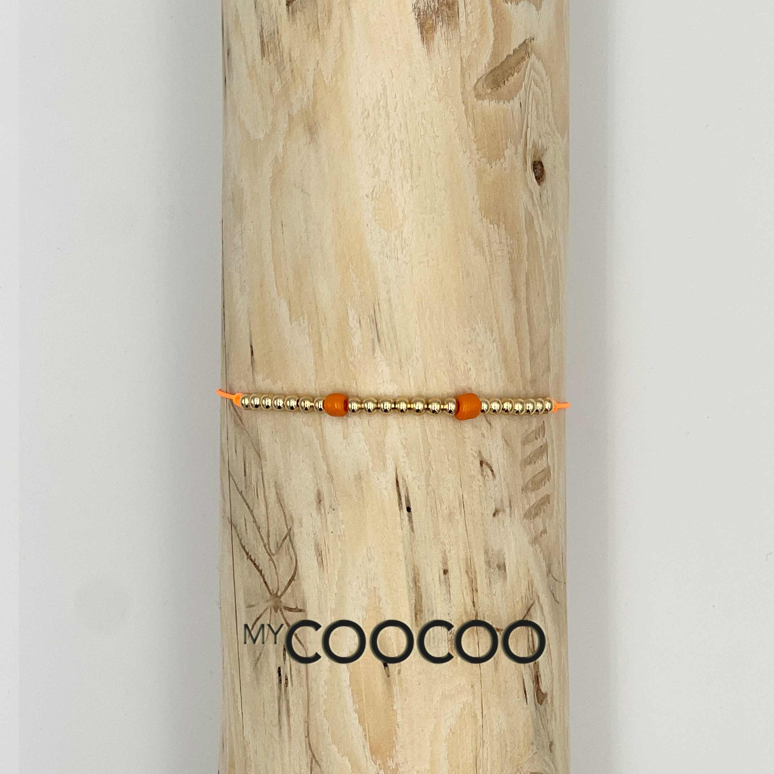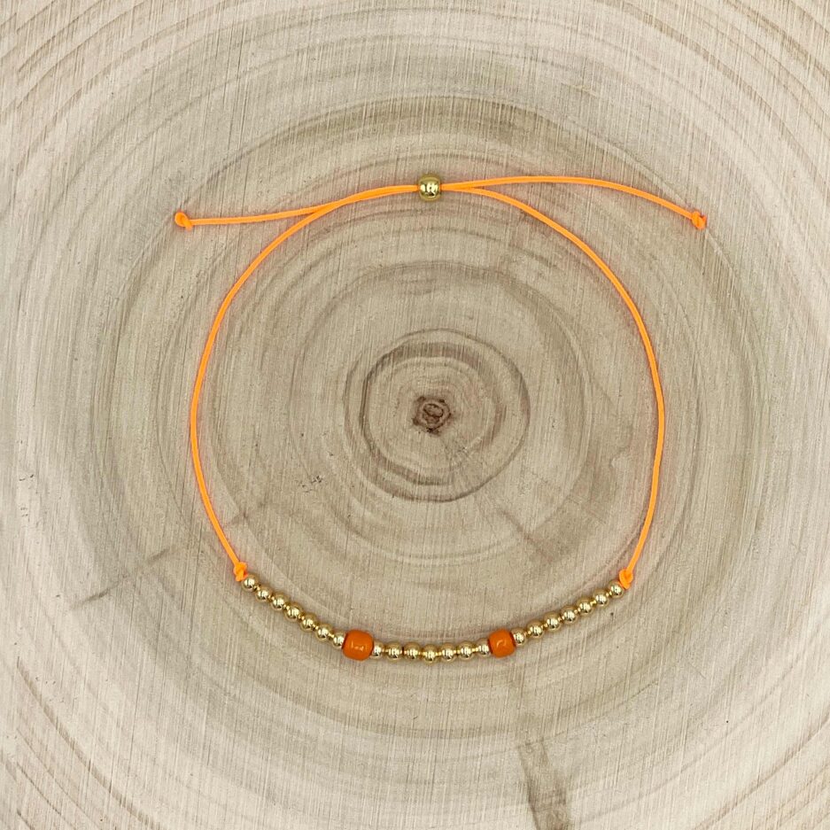 Oranges Textilarmband mit vergoldeten Perlen
